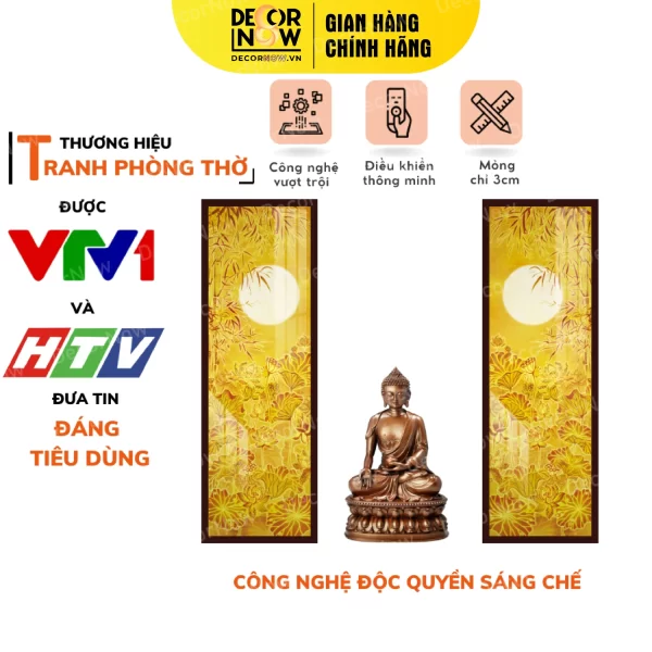 Giới thiệu chung về sản phẩm tranh hoằng pháp đối hoa sen cây trúc mặt trời DecorNow TC160