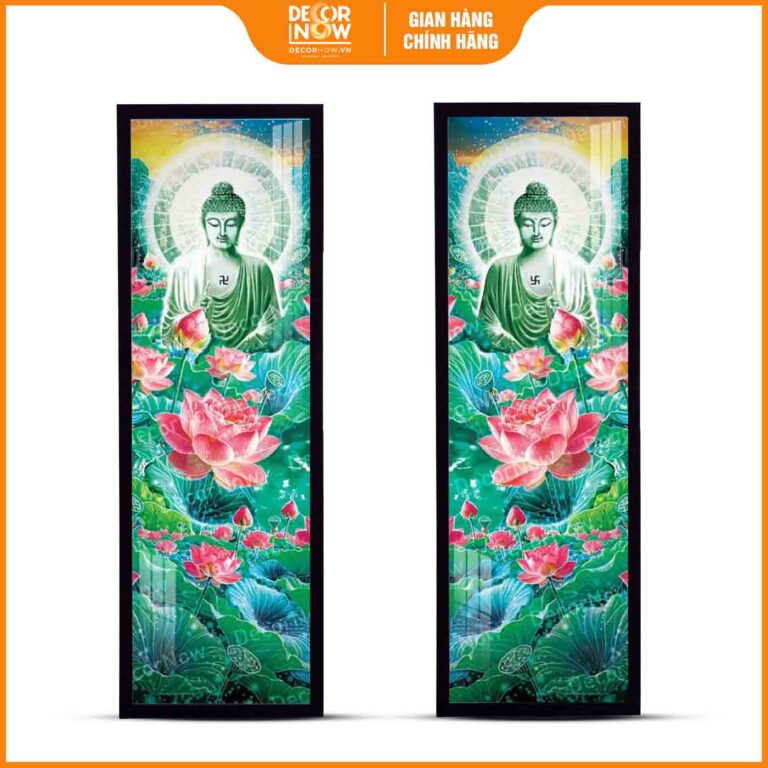 Giới thiệu chung về sản phẩm tranh hoằng pháp đối Phật A Di Đà hoa sen hồng DecorNow HD874