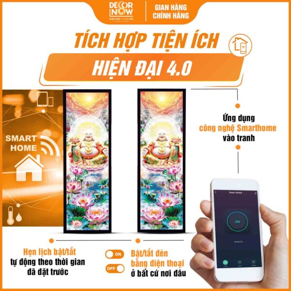 Giới thiệu chung về sản phẩm tranh hoằng pháp đối Phật Di Lặc hoa sen pha lê DecorNow HD905