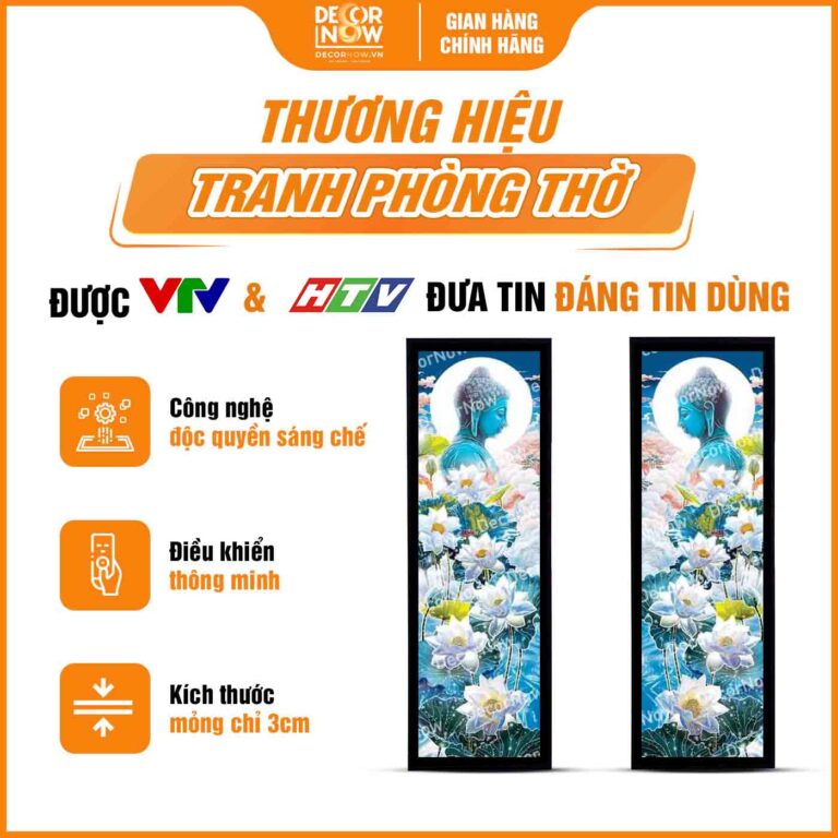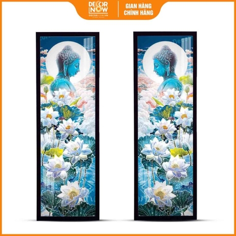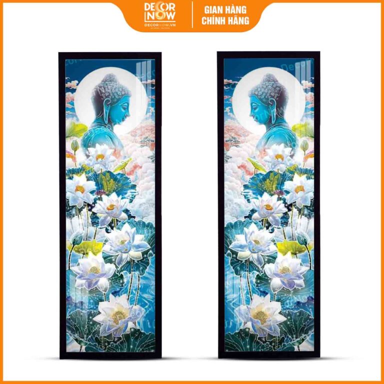Giới thiệu chung về sản phẩm tranh hoằng pháp đối Phật Thích Ca Mâu Ni hoa sen trắng DecorNow HD897