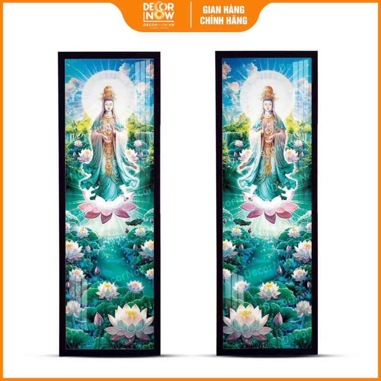 Giới thiệu chung về sản phẩm tranh hoằng pháp đối Quan Thế Âm Bồ Tát hoa sen hồng DecorNow HD899