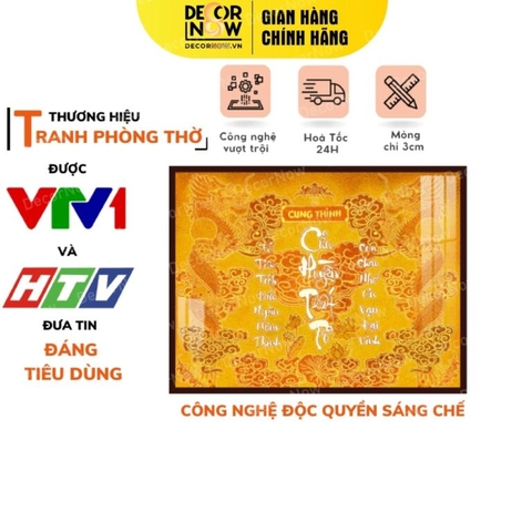 Tranh hoằng pháp ngang chữ Cửu Huyền Thất Tổ rồng bay DecorNow TC206 là một tác phẩm nghệ thuật độc đáo, mang đậm ý nghĩa tâm linh và giá trị văn hóa truyền thống. Với thiết kế tinh xảo và hình ảnh rồng bay mạnh mẽ, cùng với điểm nhấn chữ “Cửu Huyền Thất Tổ”, mang đến ý nghĩa về lòng thành kính và ghi nhớ công ơn của tổ tiên cùng các bậc tiền nhân qua nhiều thế hệ. Tranh sẽ rất phù hợp để trang trí bàn thờ, đặc biệt là khi treo phía sau tượng Phật hoặc bàn thờ gia tiên, mang lại cảm giác bình an cho gia đình.