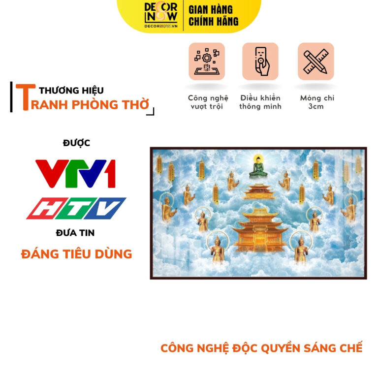 Giới thiệu chung về sản phẩm tranh hoằng pháp ngang mây trời cung trời Đao Lợi xanh DecorNow HD888