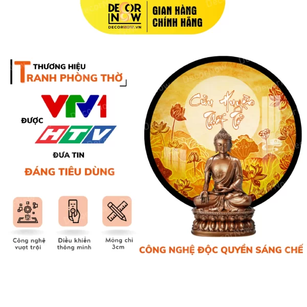 Tranh hoằng pháp tròn chữ Cửu Huyền Thất Tổ hoa sen trời DecorNow TC215 là tác phẩm nghệ thuật đặc sắc, mang đậm giá trị tâm linh và văn hóa truyền thống. Với hình ảnh hoa sen trời tinh tế, tranh không chỉ thể hiện sự thanh cao mà còn tượng trưng cho sự giác ngộ và bình an. Chữ “Cửu Huyền Thất Tổ” không chỉ mang ý nghĩa tưởng nhớ và tỏ lòng thành kính với tổ tiên mà còn tạo điểm nhấn cho không gian sống. Tranh phù hợp để trang trí ở phòng khách, phòng làm việc, đặc biệt là đặt ở bàn thờ gia tiên mang lại sự trang nghiêm và ấm cúng cho không gian.