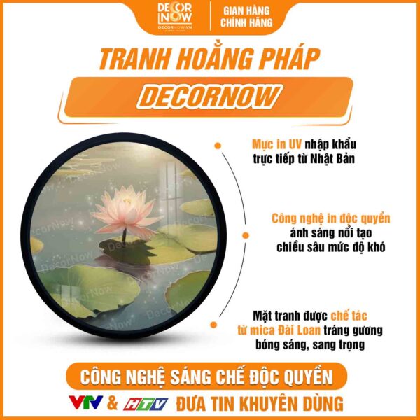 Giới thiệu chung về sản phẩm tranh hoằng pháp tròn hồ sen hồng DecorNow HD850