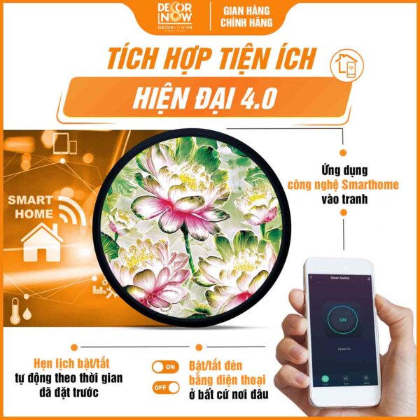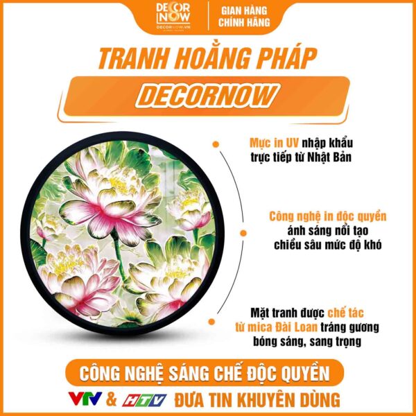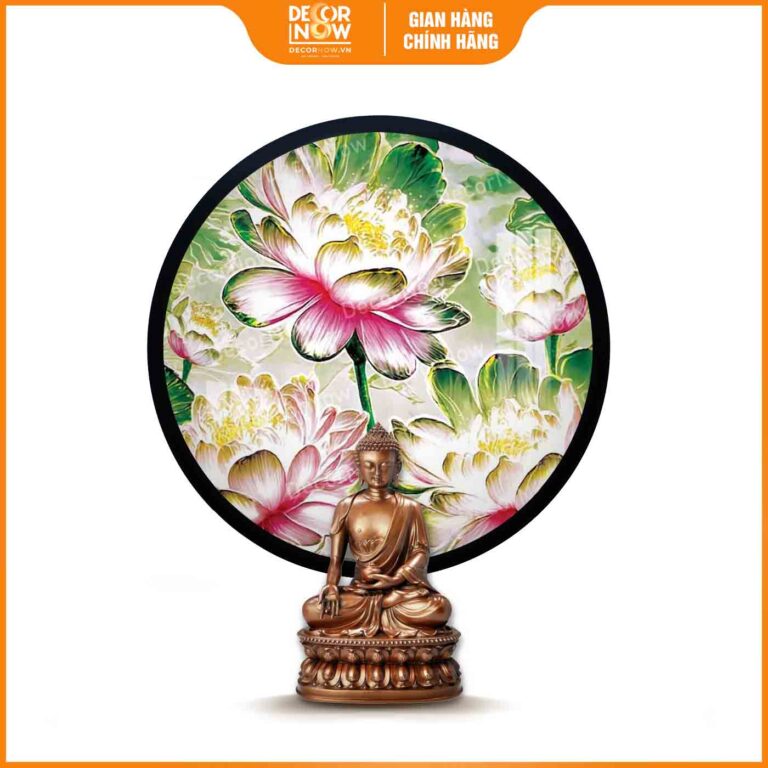Giới thiệu chung về sản phẩm tranh hoằng pháp tròn sen hồng pha lê DecorNow HD858