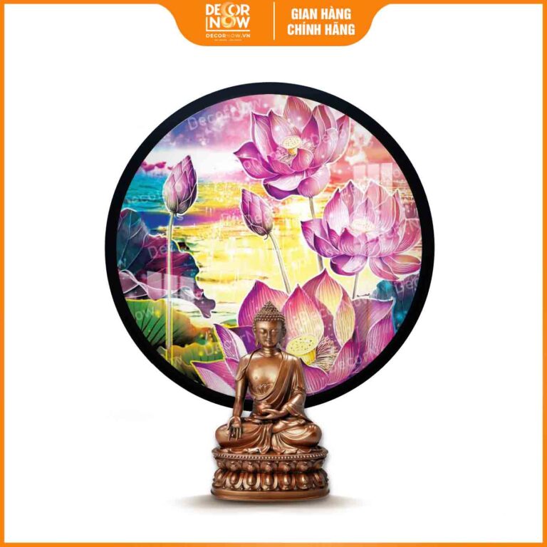 Giới thiệu chung về sản phẩm tranh hoằng pháp tròn hoa sen hồng thanh tịnh tĩnh tại DecorNow HD904