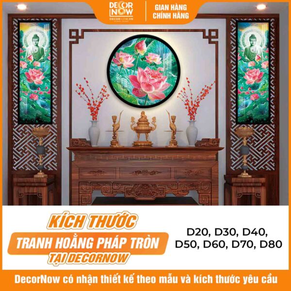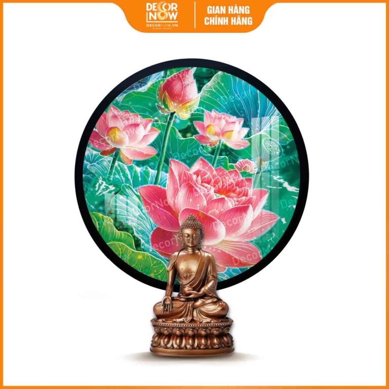 Giới thiệu chung về sản phẩm tranh hoằng pháp tròn hoa sen hồng tỉnh thức giác ngộ DecorNow HD875