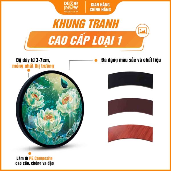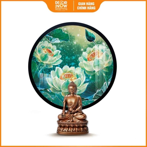 Giới thiệu chung về sản phẩm tranh hoằng pháp tròn hoa sen xanh kiên trì trí tuệ DecorNow HD896