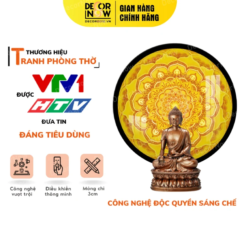 Tác phẩm tranh hoằng pháp tròn DecorNow TC49 được chế tác từ những nguyên vật liệu nhập khẩu và cao cấp, đảm bảo mang đến một sản phẩm chất lượng vượt trội. Mặt tranh được chúng tôi chế tác từ chất liệu MICA tráng gương trong suốt và có khả năng chống thấm nước hiệu quả kể cả khi đổ nước trực tiếp lên bề mặt. Khung PE Composite được nhập khẩu từ Nhật Bản với độ dày mỏng, nhẹ nhất trên thị trường tranh thờ hiện nay. Cùng với đó là hiệu ứng đèn LED V3 mang đến ánh sáng vàng dịu nhẹ, tỏa sáng đều mặt tranh, tạo cảm giác ấm áp và bình yên.