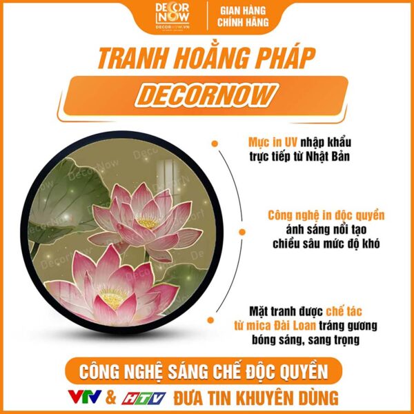 Giới thiệu chung về tranh hoằng pháp tròn sen hồng hiện đại DecorNow HD842