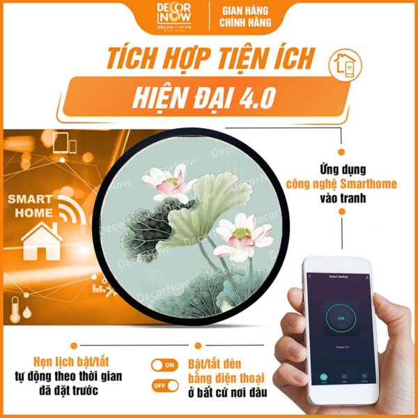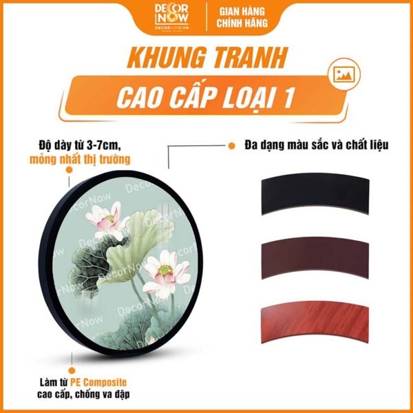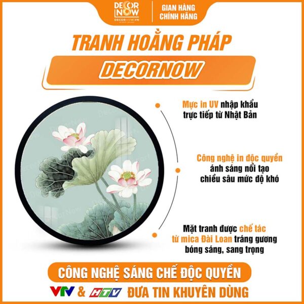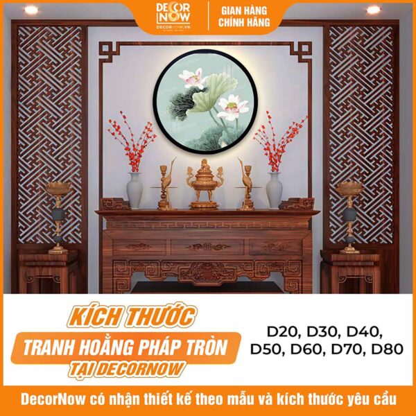 Giới thiệu chung về sản phẩm tranh hoằng pháp tròn sen xanh ngọc bích DecorNow HD851