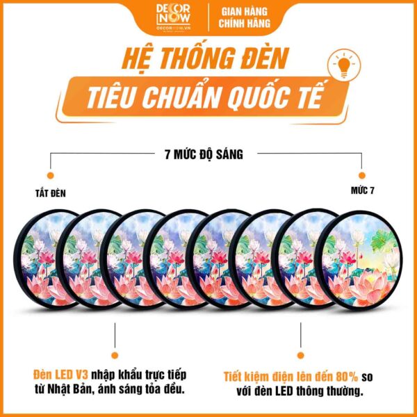 Thuộc phân khúc tranh trang trí phòng thờ chất lượng cao, tác phẩm hoằng pháp vườn hoa sen HD902 được tuyển chọn kỹ càng trong từng nguyên vật liệu chế tác sản phẩm. Nổi bật với mặt tranh MICA nhập khẩu từ Đài Loan, mực in UV cao cấp sản xuất tại Nhật Bản hay sử dụng hệ thống đèn LED V3 hiện đại. Tạo nên một tác phẩm nghệ thuật không chỉ sở hữu vẻ đẹp sang trọng, tinh tế mà còn vô cùng hiện đại, cao cấp.