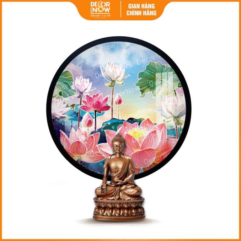 Giới thiệu chung về sản phẩm tranh hoằng pháp tròn vườn hoa sen minh triết từ bi DecorNow HD902
