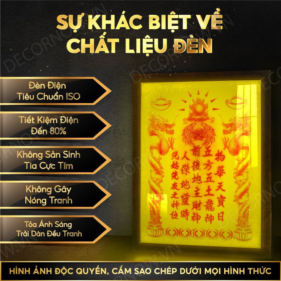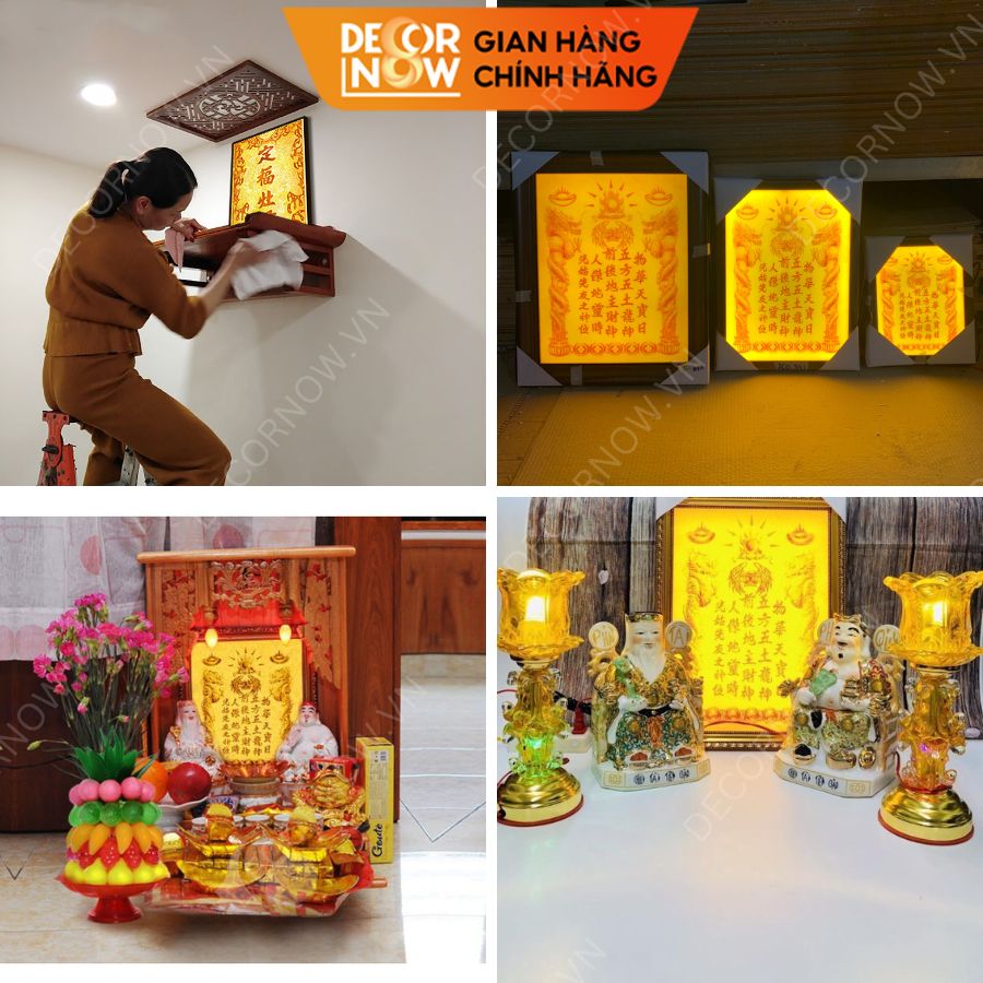 - DecorNow sử dụng linh kiện hệ thống đèn chất lượng cao theo tiêu chuẩn ISO, giúp ánh hào quang vàng đặc trưng tỏa sáng đều ấm áp, che chở cả căn phòng thờ, mang đến cho gia chủ cảm giác bình yên, an toàn và thư giãn sau những mệt mỏi bên ngoài.