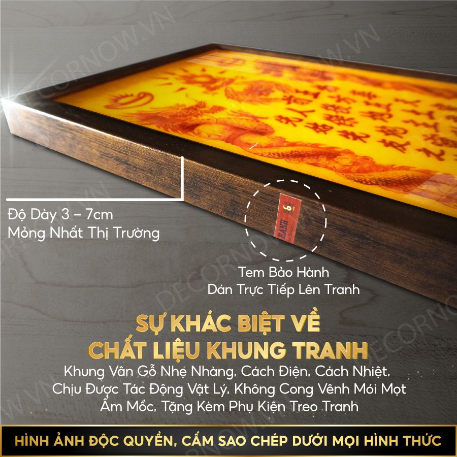 - Khung tranh được làm từ chất liệu PE Composite vân gỗ cao cấp, có độ cứng cao, mạnh mẽ nhưng vẫn giữ được tính đàn hồi, có khả năng chống chịu được các tác động vật lý cơ học, chịu nhiệt chống va đập phản quang, không cong vênh, giúp tuổi thọ tranh kéo dài rất lâu.