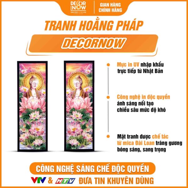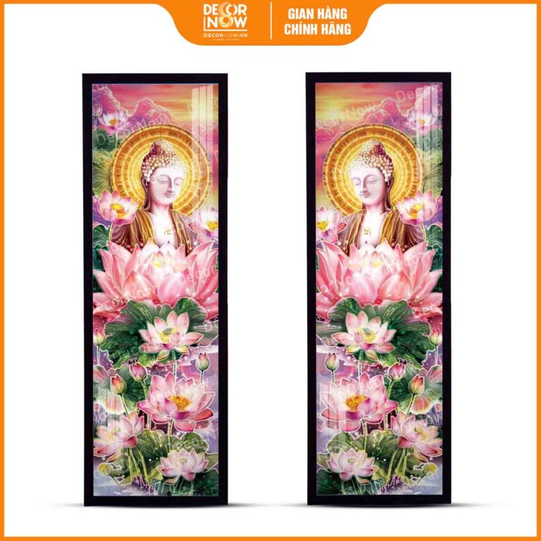 Giới thiệu chung về sản phẩm tranh hoằng pháp đối Phật A Di Đà và hoa sen hồng DecorNow HD872
